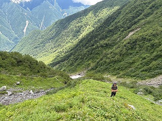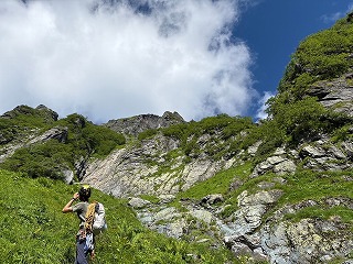 広河原から出発し、昨日見つけた道を行くもDガリーへの道であり、Bガリーへ行くアプローチではありませんでした