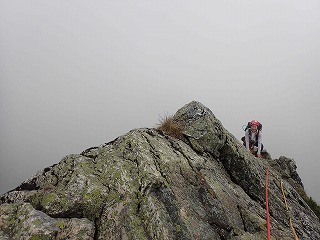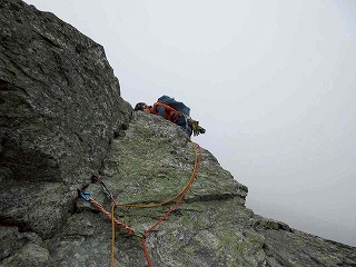 懸垂ポイントまでは、高度感のあるリッジをアドレナリン全開で登る。